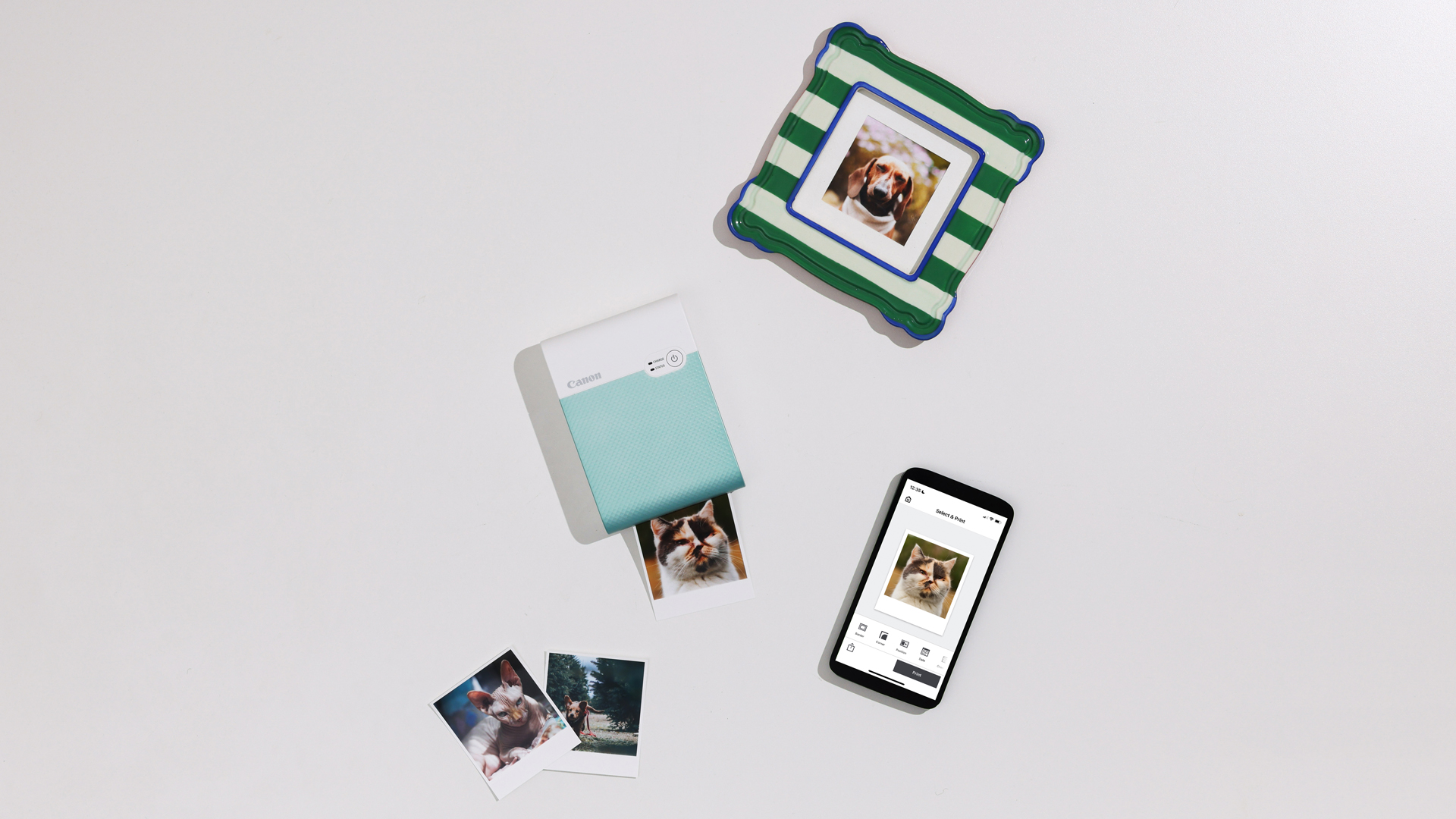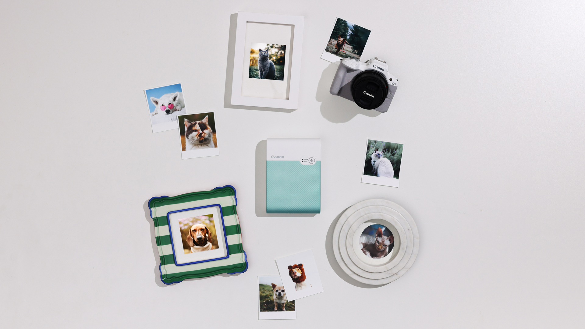 Pixel Adgency came to us to produce three videos for Canon‘s Selphy printers. The campaign was to showcase the Selphy CP1500 and the Selphy Square QX10 printers and their versatility. We custom designed, built and styled each set to showcase some different uses of the printers; scrapbooking, creating a vision board and framing your pets photos. The project featured 3 main videos,  and 9 still images (3 per video). The project was shot in our studio in 1 day with three separate sets and animators shooting simultaneously.