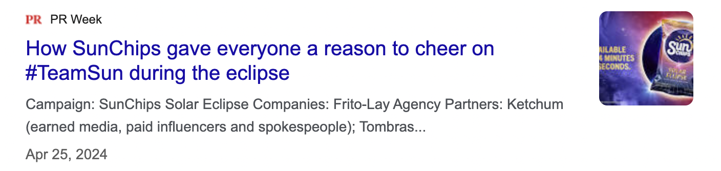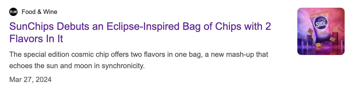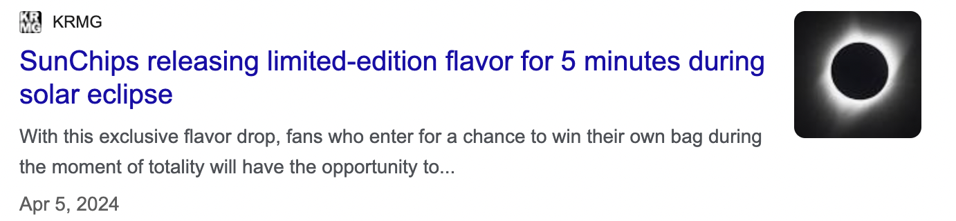 Tombras Agency approached us to collaborate on the new celestial campaign for SunChips. In honor of the 2024 solar eclipse SunChips created a limited time bag that would only be offered online during the 4 minutes and 27 seconds of the total eclipse. Our job was to deliver a visceral campaign to promote the event.
